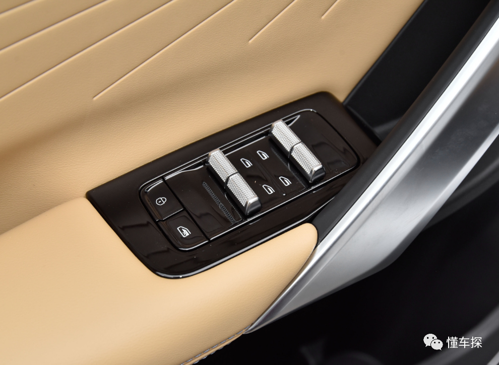 值得一提的是,新车的车窗采用了换挡式的调节按钮,拨杆为金属材质,别致又显得很精致。