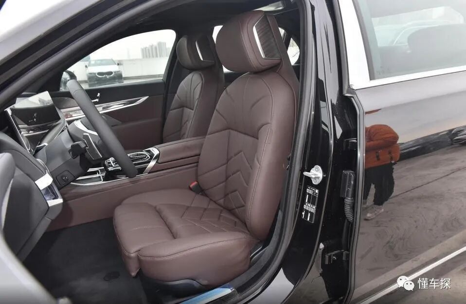 比较讨喜的设计是,宝马740Li后排提供老板位设计,前排座椅向前折叠后就能为右后排老板位空余出大量空间,舒适度不错,但副驾驶座椅头枕向前挪移后会挡住右侧外后视镜一半可视面积,比较考验司机的驾驶水平。