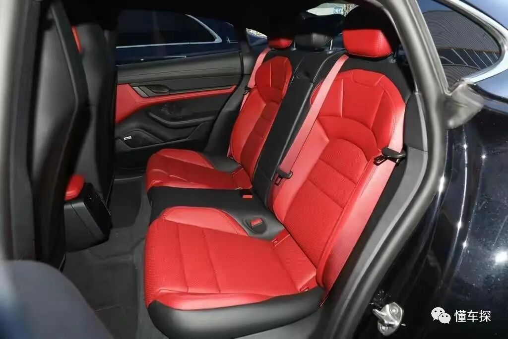 坐在保时捷Taycan的后排,因为地台进行了挖空处理,所以更好提升了后排乘客的乘坐舒适性。