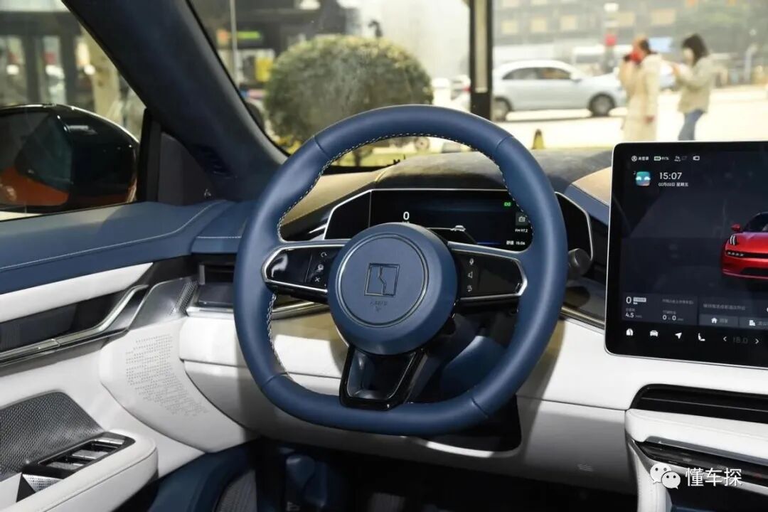 如果外观是比较个性运动,极氪001车内造型倒是风格大变,更注重科技感和档次感营造。