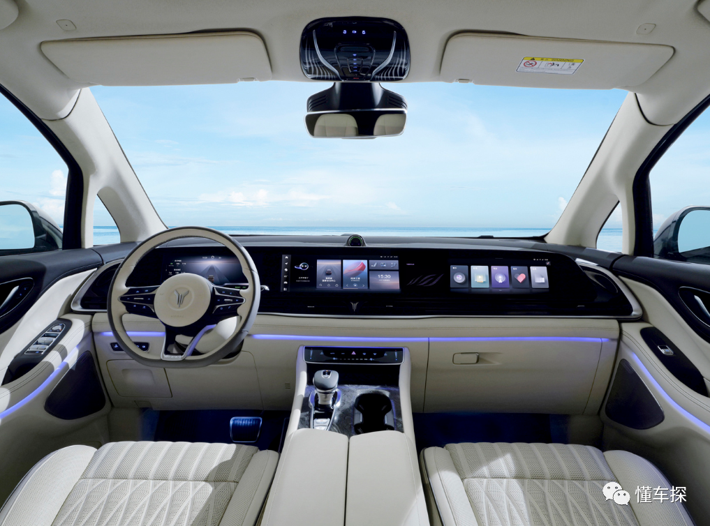 然后在内饰方面,岚图梦想家的给人的感觉是比较大胆创新的,在大量皮革材质的覆盖下,内饰的档次感、豪华感基本上没得说。