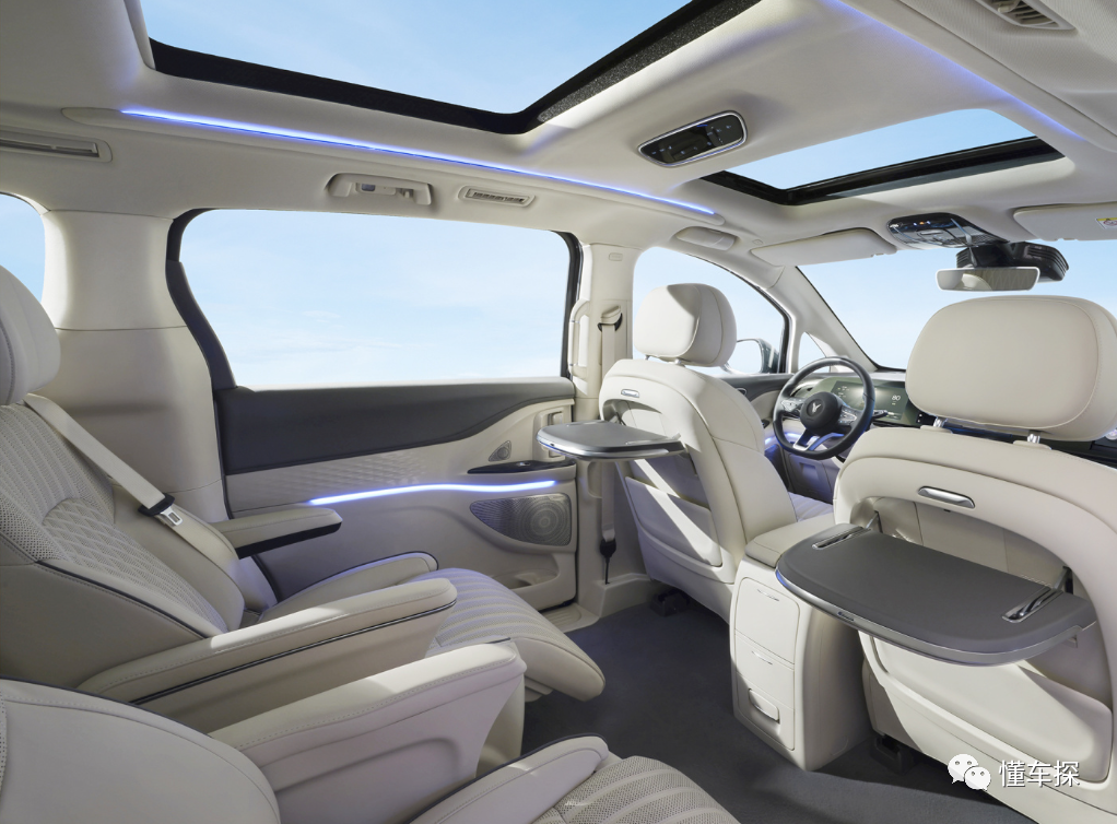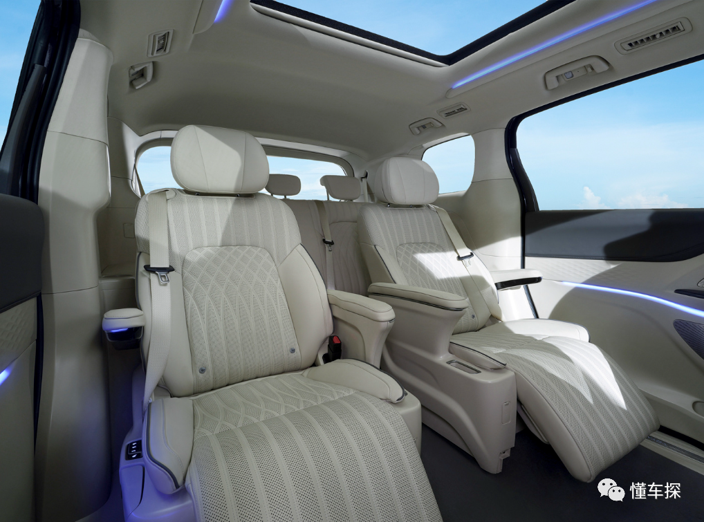 车头配备了直瀑式格栅,同时和日行灯、大灯融为一体,车身部分还带有多辐条轮圈、电动侧滑门、悬浮式车顶等设计,基本上高端MPV车型该有的设计元素,它是基本都带有的。
