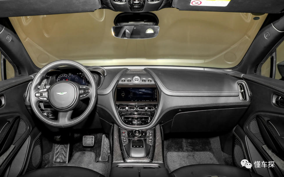 打开车门来到车内,阿斯顿·马丁DBX的内饰设计非常的豪华,虽然它在科技质感方面不是很好,但是在用料方面却十分的讲究,大量真皮材质的应用,让其内饰的高级质感油然而生,同时它的内饰设计可选的色调也达到了35种,并且还支持定做功能,用于彰显用户的身份,而在中控台上,该车给人的感觉极具科技感,并且它在内饰也保留了跑车的设计风格,再加上全景天窗的加持,在视野和豪华感,以及质感方面,这台车绝对是SUV车型中顶尖水准。