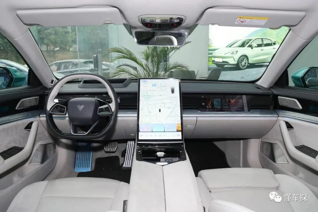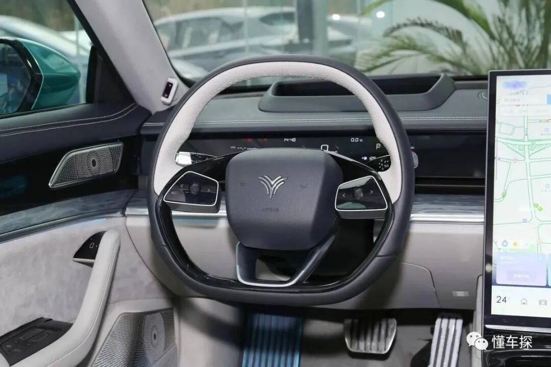 坐进车内,简洁的中控台有着不错科技氛围,因为新车具有三块液晶屏,分别是13.3英寸全液晶仪表,搭配17.6英寸竖直中控屏以及12.3英寸副驾驶娱乐屏,三屏联动带来同价位少有的智能体验,像实拍这款增程版顶配还具有AR-HUD抬头显示系统,更是充分展现何为智能座舱。