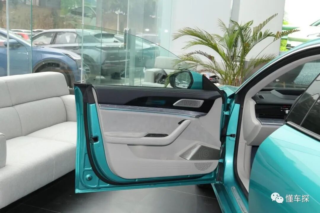 而19英寸多辐式网状轮毂也十分个性,内置大尺寸红色刹车卡钳,运动感也得到提升,如果开启车门还能看到无框设计,更坐实了新车轿跑定位。