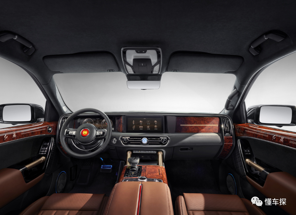 主要以棕色为基调,并采用仿木式盖板来增加豪华感和红旗L5般的氛围。