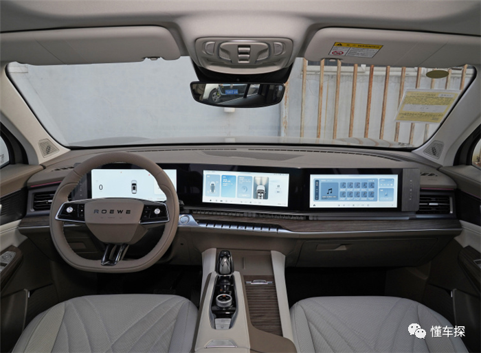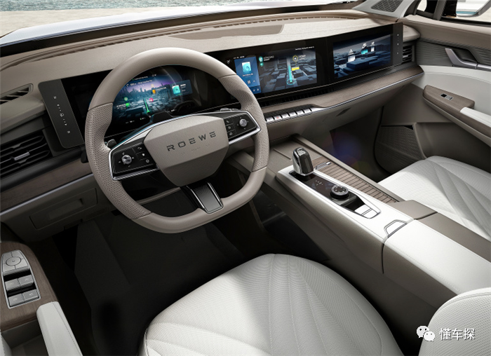 内饰部分,荣威RX9的表现也相当到位,中控三块屏幕虽然没有做成无缝衔接的视觉效果,但科技感也不差,再加上荣威RX9的内饰用料、做工都比较到位,其车内的档次感也很强,甚至有一定的豪华氛围,同时荣威RX9在细节上处理也很到位,像一些保留下来的物理按键、空调出风口设计等等,这些都非常好,尤其是保留了部分物理按键,方便车主盲操,还是非常值得肯定的。
