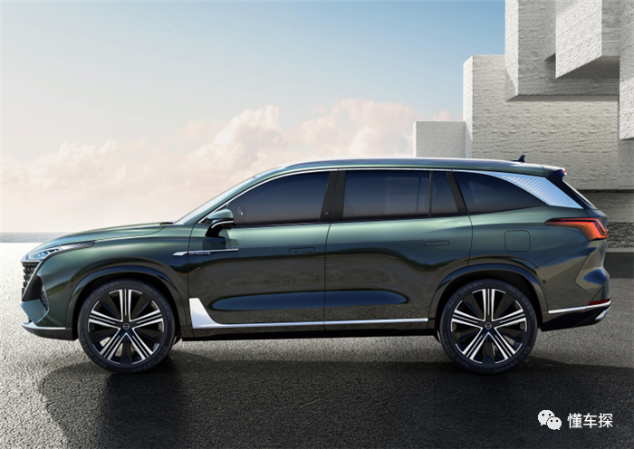 车身侧面荣威RX9造型相对方正一些,这也是为了六座空间去考虑。