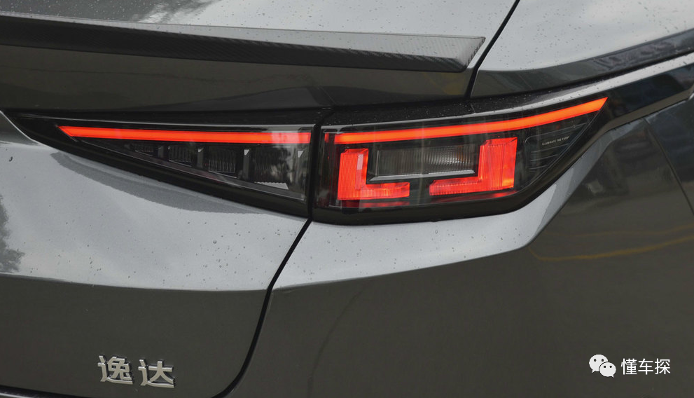 逸达配备了18英寸双色轮毂,造型尤为动感,与之匹配的轮胎尺寸为225/45R18。车尾加入了一块仿碳纤维纹理的扰流板进行点缀,为近似溜背的尾部加入运动的元素。
