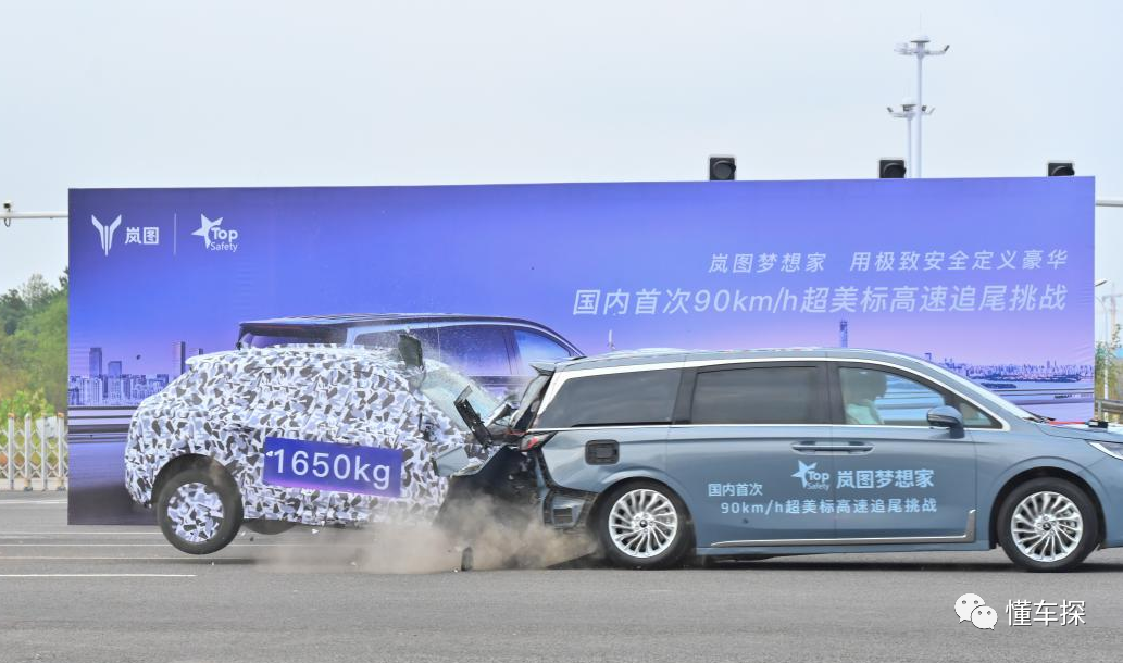 且在此前的超规格追尾碰撞中,梦想家被时速100km/h子弹车追尾,其车身无严重变形、车门可正常开启,电池也安然无恙,充分见证了它的安全性。