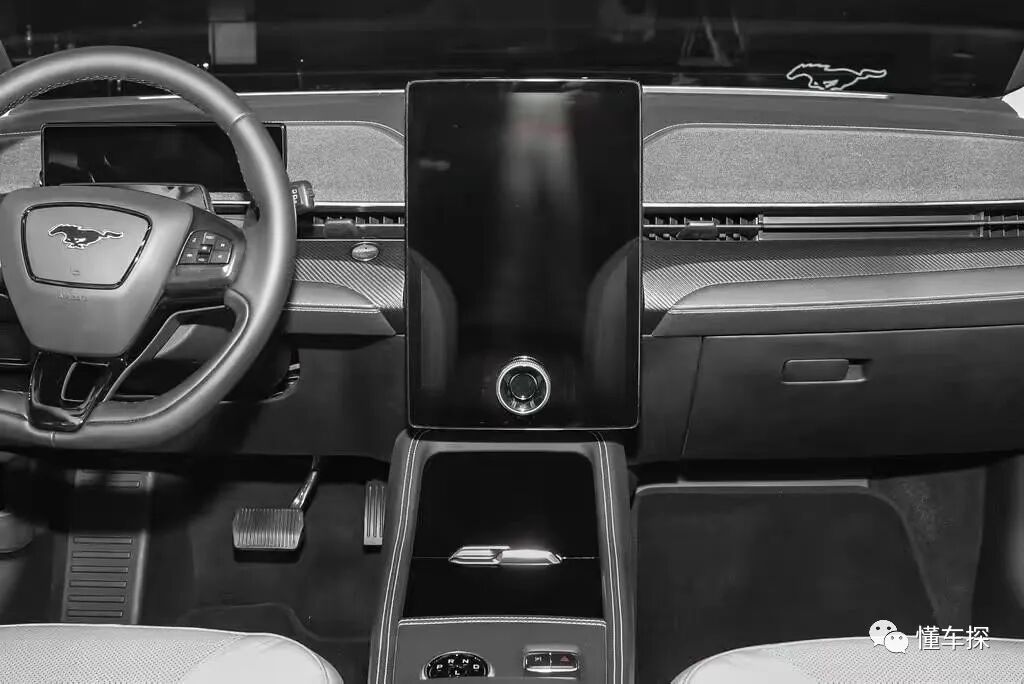 内饰方面,福特电马的中控风格比较简约,对称式的操作台,竖直造型的15.5英寸中控显示屏,体现出一定的科技气息,但设计新意比较一般,但好在内饰做工还算不错,实车质感挑不出太大的槽点。