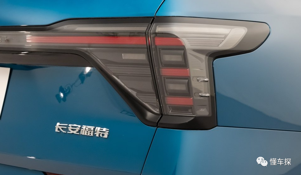 尾灯采用了黑底设计,灯组内部结构精致,灰色外壳与内部红色灯带相搭配,即便不点亮,视觉效果也极具层次感。