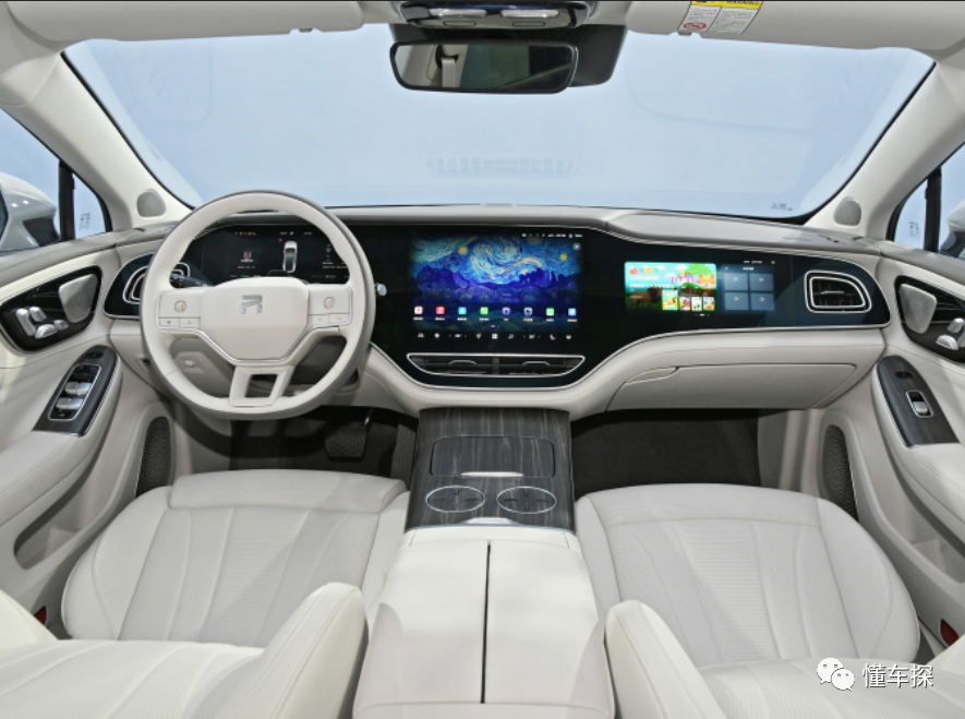 内饰方面:飞凡F7是一款采用RISING MAX巨幕43英寸三联屏设计的纯电动车,搭载了高通骁龙8155芯片和RISING OS智舱交互系统。