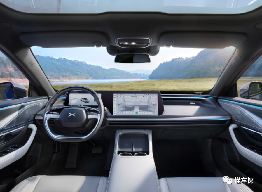 内饰方面:小鹏P7i的内饰设计简洁清爽,方向盘采用平底式两幅设计。