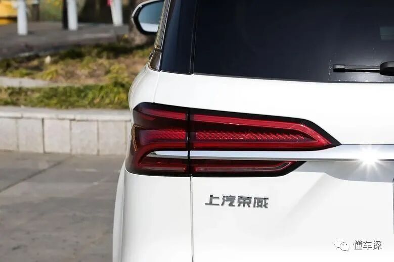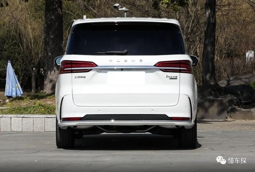 车尾部分,新款荣威iMAX8的尾灯设计没有改变,仍然使用LED光源,镀铬饰条连接两端灯组,搭配尾门中央贯穿式镀铬饰条和后包围底部黑色饰板,使整个车尾看上去具有相对丰富的层次感。