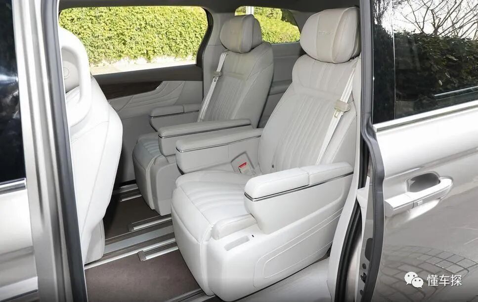 来到后排,新款荣威iMAX8座椅延续老款车型设计,次低配及以上车型主驾驶座椅配备含腰托的8向电动调节,中高配车型第二排搭载两张独立航空座椅,不仅支持电动调节,而且提供小桌板和电动腿托,配有加热/通风/按摩功能。
