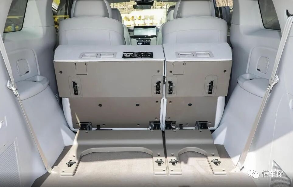 座椅舒适性配置挺丰富,然而和传祺M8车型一样,新车第三排座椅不支持向两侧、地板收叠摆放,仅支持向前翻折或放倒靠背,占据了后备箱一定的空间利用,空间灵活性和实用性无法与丰田赛那媲美。
