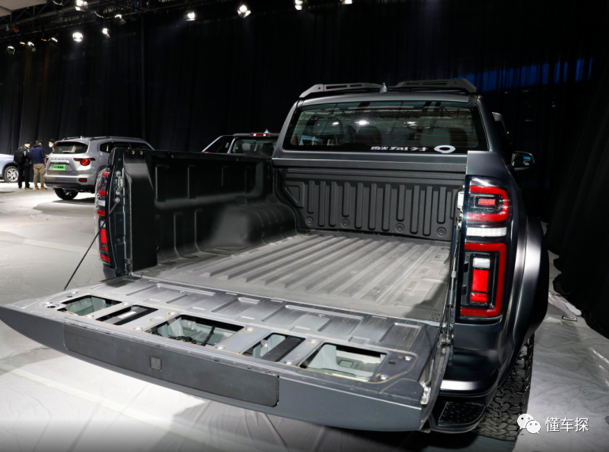 此外,长城炮火弹版毕竟是一台皮卡车型,其尾箱的尺寸在1520*1520*540毫米,同时为了方便用户上下车,其在侧身还设计了脚踏板,至于车尾部分,长城炮火弹版也采用了很多橙色的装饰条,其尾灯组虽然采用了竖置设计,但是灯组内部的构造还是非常独特的,在点亮后还是可以为该车带来一定辨识度的。