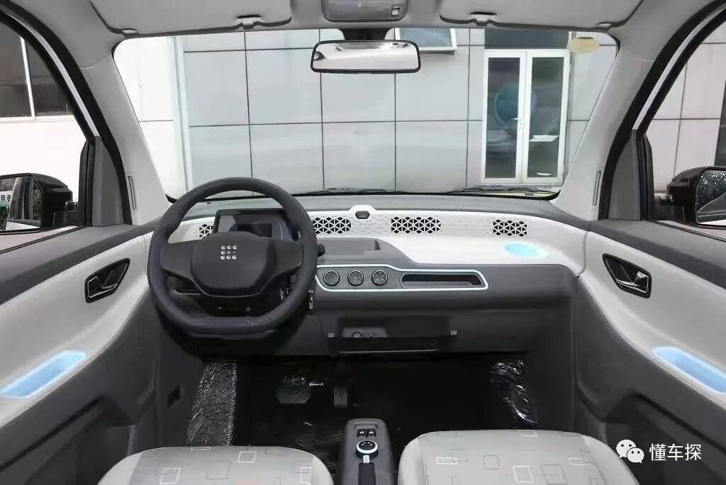 内饰部分,风光MINIEV的中控造型比较简单,双色混搭的内饰配色,倒是给其增添了些许的个性年轻气息。