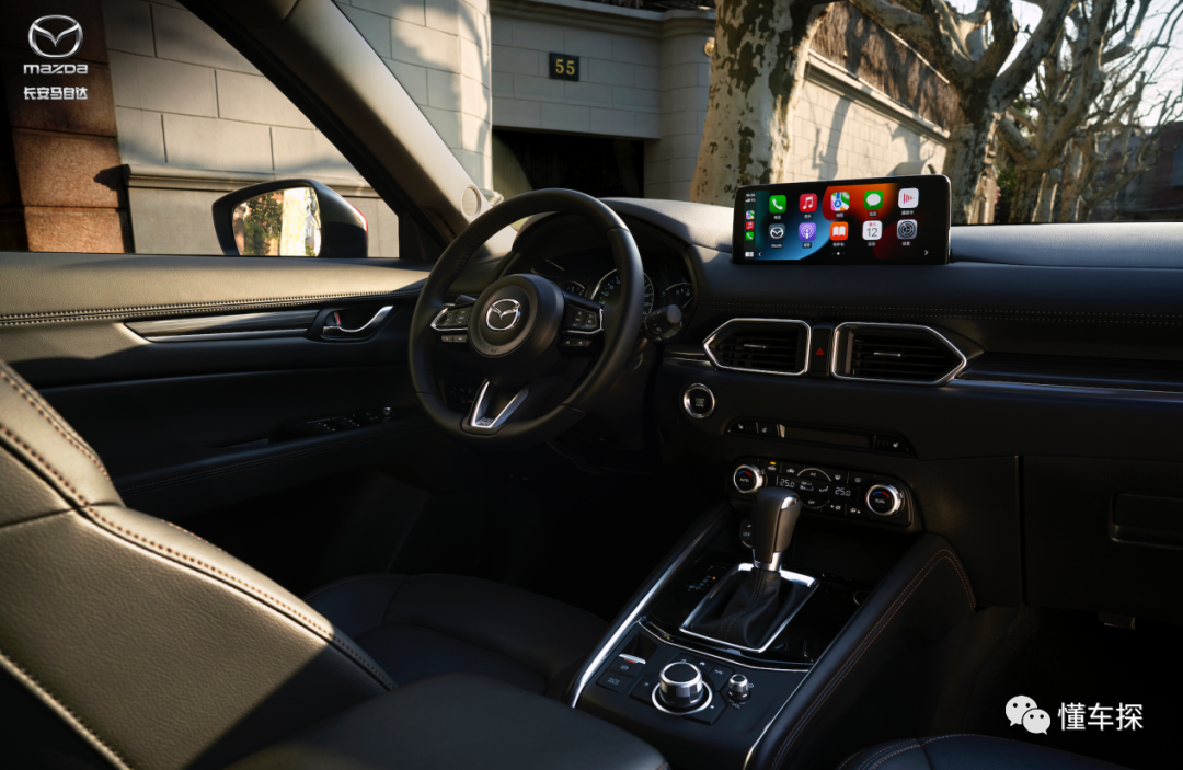 CX-5依然是连续重拳回击,方向盘用的是牛肩皮,中控采用的是10.25”中央显示屏,而且全系标配MZD悦联系统,敢降价也真能打。