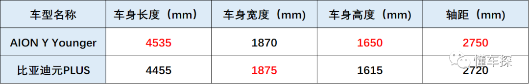 通过数据对比,整体尺寸相较于比亚迪元PLUS有一定优势。