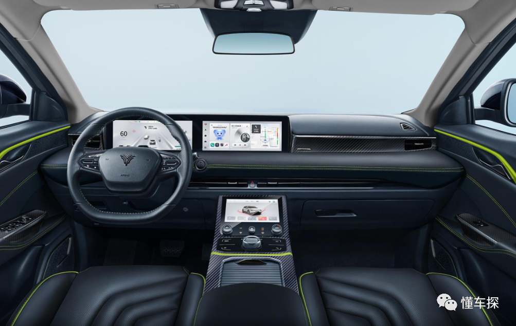 内饰方面也算的上是这台哪吒U-Ⅱ挑战版变化最大的一个地方了,尽管它在内饰的整体布局上和老款车型相比并没有太大的变化,但是在屏幕尺寸方面,新车却得到了提升,从原先的双8吋屏幕设计变成了如今的双12.3英寸屏幕设计,因此在智能化体验上相比于老款车型要更甚,再加上中控屏下方的空调控制屏幕,为用户形成三屏联动的布局,同时在车机系统内部,新车的部分车型也是配备了高通骁龙8155芯片,用以保障车机的流畅程度,而且新车的部分车型还可以选装地平线征程3辅助驾驶芯片以及L2.5级辅助驾驶感知硬件,进一步提升新车的便捷性操控。