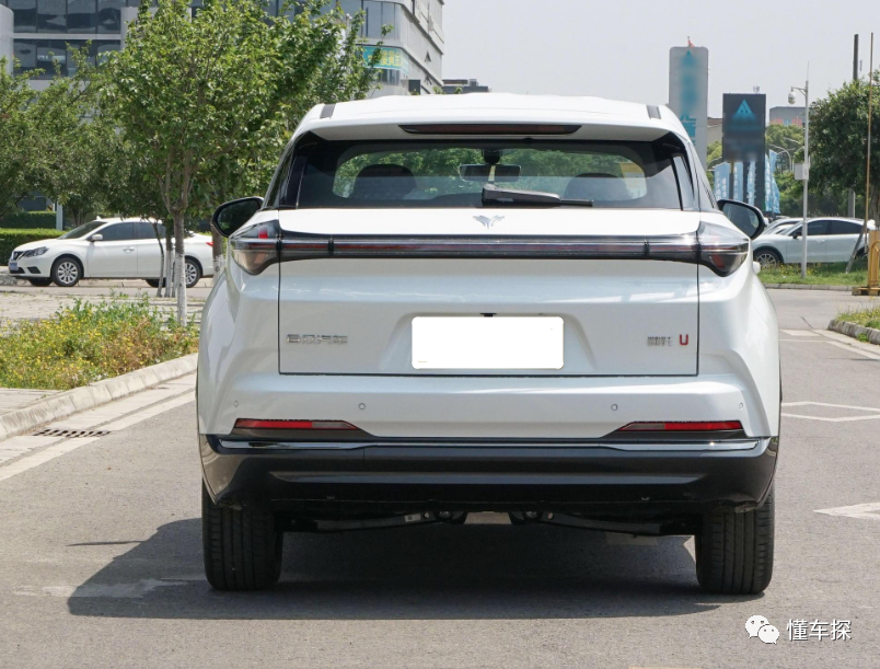 至于尾部的设计上,新车的给人一种很强的层次感,在车尾顶部,其采用了一个小尺寸的扰流板设计,尾灯组则是当下比较流行的贯穿式设计,并且在尾灯组的周围,新车也是采用了熏黑设计,让其夜间的辨识度更高,而在后包围的设计上,哪吒U-Ⅱ挑战版的设计就中规中矩了,整体在设计完成度上还是比较高的。