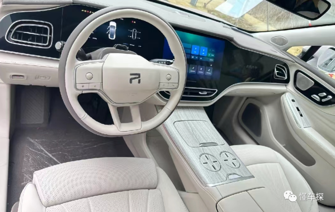 内饰部分,飞凡F7中控台的科技感是比较强的,搭载了巨幕43英寸三联屏,这点和飞凡R7是一致的,其中还搭载了RISING