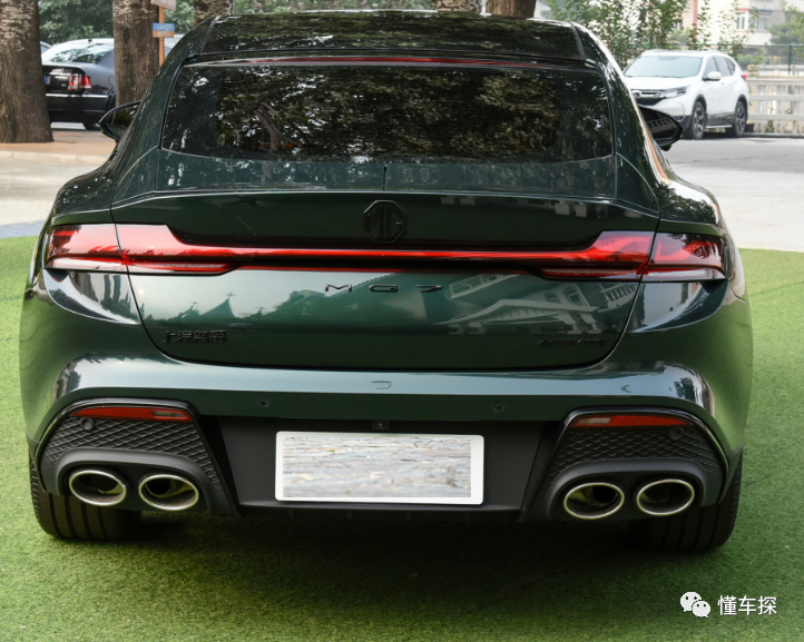 从车尾部看,最先能看到的就是它采用了真双边四出尾排,银色的排气管显得又显眼又帅气。