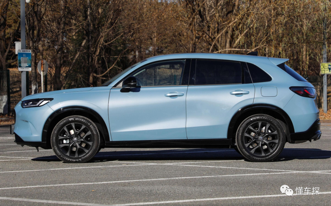 从侧面来看,ZR-V致在混动版与燃油版基本是没有区别的,无非就是将轮毂和后视镜进行了熏黑处理,从而带来一定的运动氛围。