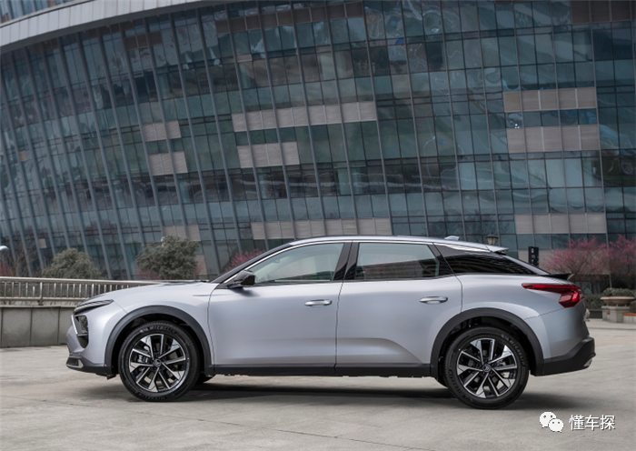 X虽然是三厢车的定位,但掀背设计让其看上去更像是两厢车的造型,并且还有悬浮式车顶设计,整个车身的运动感很强,再加上中型车的尺寸也让凡尔赛C5