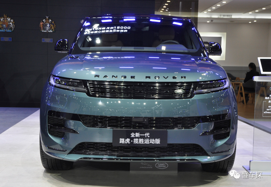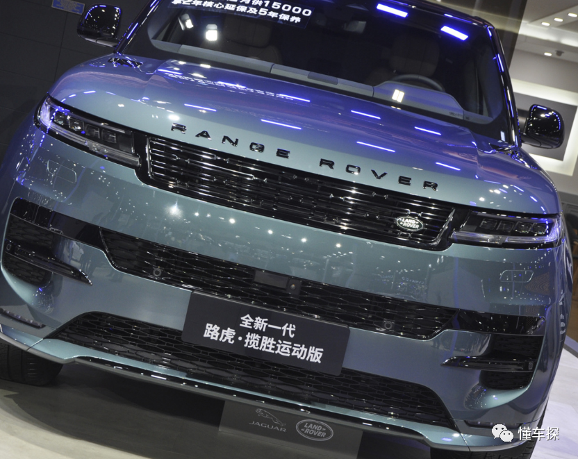 前脸部分,路虎揽胜运动版使用小而窄的进气格栅,进气格栅右下角有着路虎揽胜的小图标。