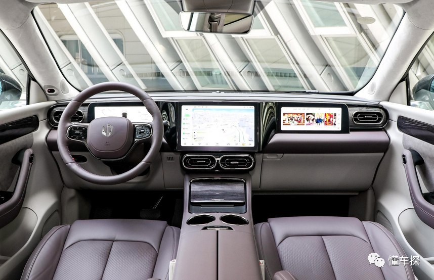 零跑C11增程版运用了无框车门,进入车内后会发现,它和纯电版本的内饰设计几乎保持了一致,但是增程版本的车机界面设计和纯电版本有着不同,零跑C11增程版在车机处的UI结构变得更加规整简洁,并且随着用户的指尖左右滑动,它的屏幕界面背景也会切换成不同的风景画。