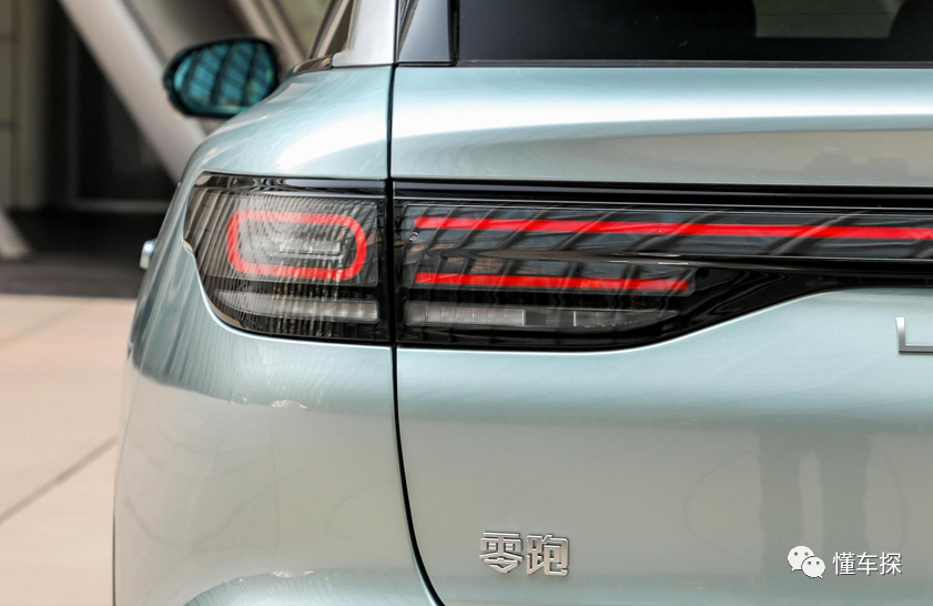 零跑C11增程版在车尾处的灯光设计采用了贯穿式造型,它的尾灯有着黑色的边缘包裹,使其在浅色车漆上更加显眼,而它的红色灯光则呈现出了半环形灯带结构,在尾灯左右两侧,还有着细碎的灯珠排列,看上去如同碎钻般璀璨。