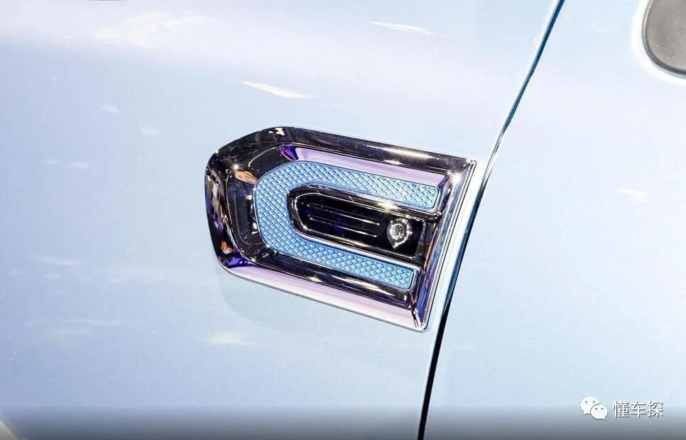 当然,要想区分电装炮和燃油炮,也有固定方法,只需通过炮LOGO、翼子板徽标颜色和尾箱标识进行识别即可,对应蓝色徽标为EV纯电版本。