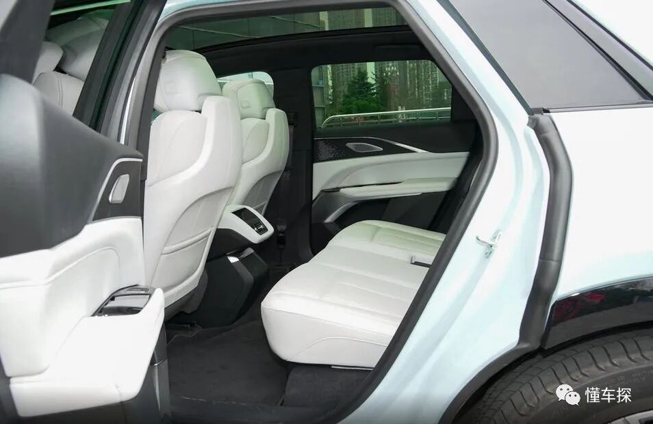 而在后排也是一样的感觉,中间地台非常平整,坐垫长度不长,但腿部的承托性到位,另受益于前排座椅的内凹设计,所以这台车后排纵向腿部空间并不像坊间传得那么局促。