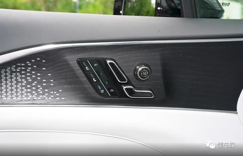 当然,内饰高级感的营造不能单靠堆料,工艺和设计也是很好的支撑点,正如LYRIQ锐歌,转向拨杆和多媒体旋钮设计的就像艺术品,经过激光雕刻的白栓木皮和金属饰框一同镶嵌于车门内侧,镂空的地方加以氛围灯点缀,细节质感豪华唯美,有令人瞩目的美系豪华味道。