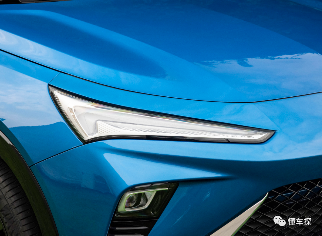 下半部分是远近光灯,嵌在车头两端也不显得突兀。