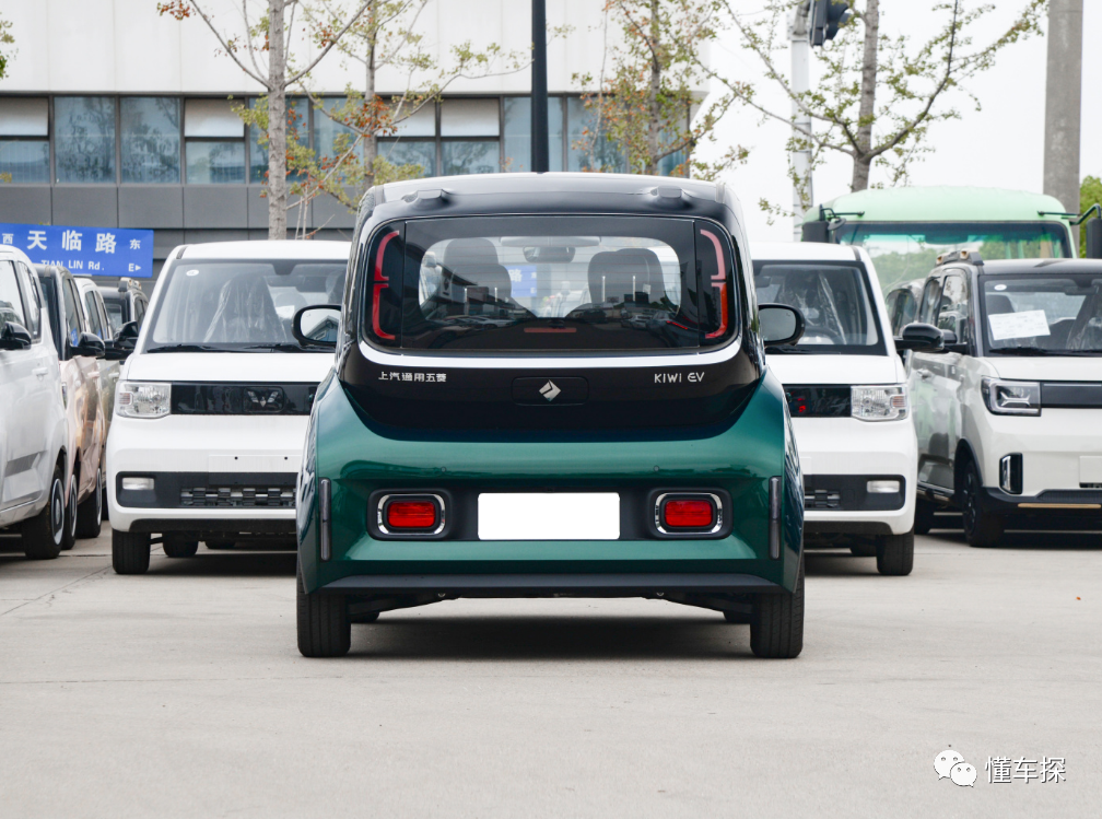 2023款KiWi EV采用上窄下宽的车身设计,后保险杠表层也提供了宽体饰板,两侧的尾灯还采用镀铬银色装饰条装饰,看着就比较精致。