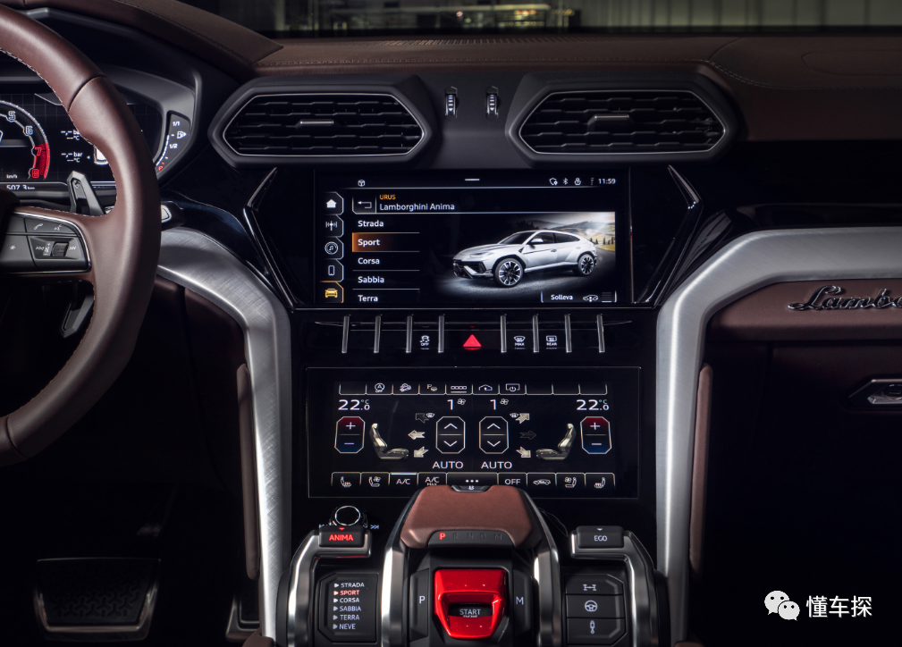 座舱内部基本没有变化,整个设计风格仍然是熟悉的兰博基尼风格,在副驾驶前方的面板上也配备有兰博基尼的英文Logo。