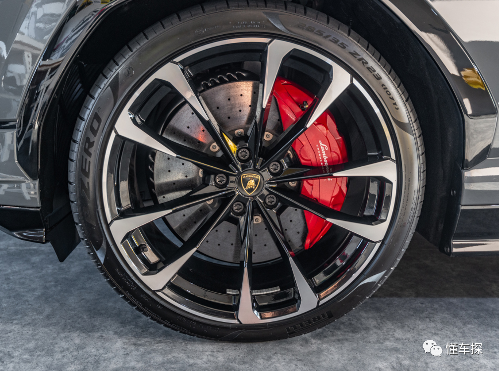 车身轮毂虽然标配21英寸,但实际上可以选装22英寸、23英寸轮毂,内部的刹车卡钳颜色也可以自行选择。