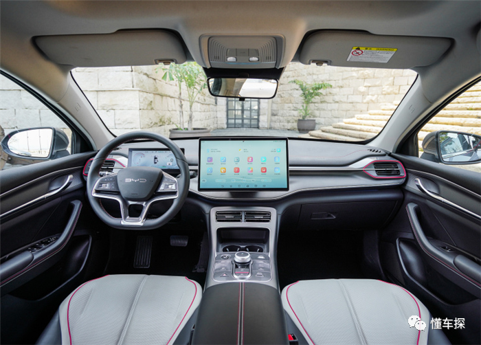 来到内饰方面,驱逐舰05的表现也很不错,整体以简洁大气的方向为主,其中控还有镀铬条装饰也更显档次,而且驱逐舰05的内饰用料、做工也很不错,大面积的软质材料覆盖,档次感、质感都有提升,而且驱逐舰05的两块屏幕让车内的科技感很较强,整个内饰也比较年轻,符合当前用户的审美标准。
