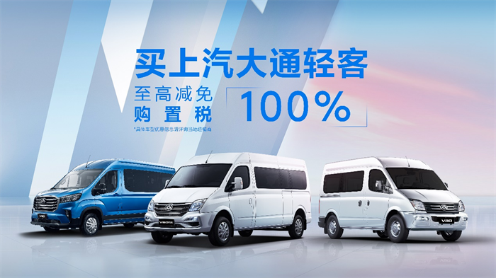 上汽大通MAXUS全系轻客采用符合减免标准的最高2.0升发动机,并且在政府补贴外,上汽大通MAXUS再补贴50%购置税,也就是说购车用户最高可享受100%购置税全免优惠,“折上折”让用户获得更大的实惠。