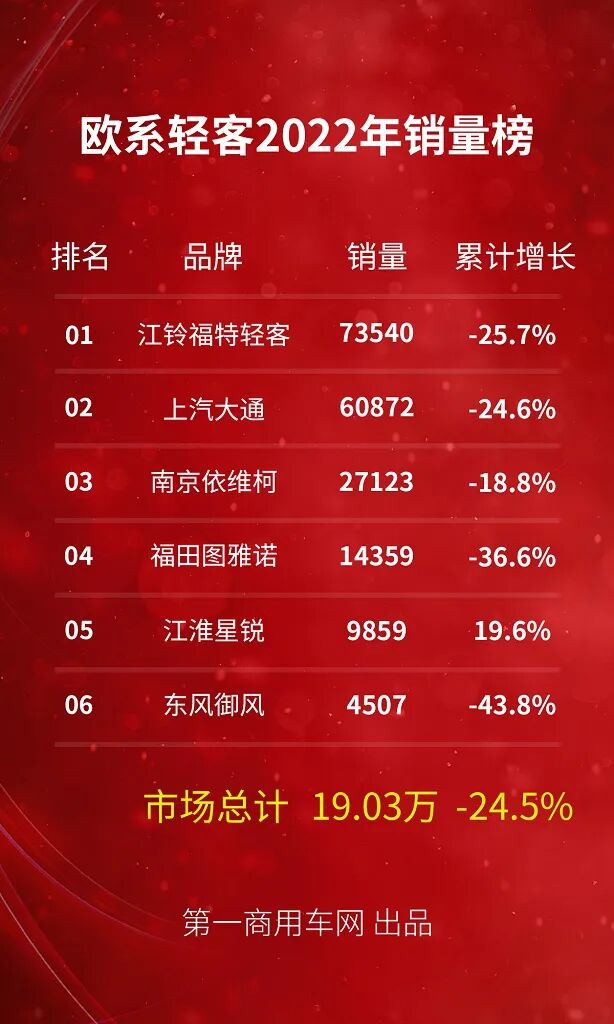 ● 2022轻客累销32万辆降22% 江淮独涨 江铃/大通谁摘冠?