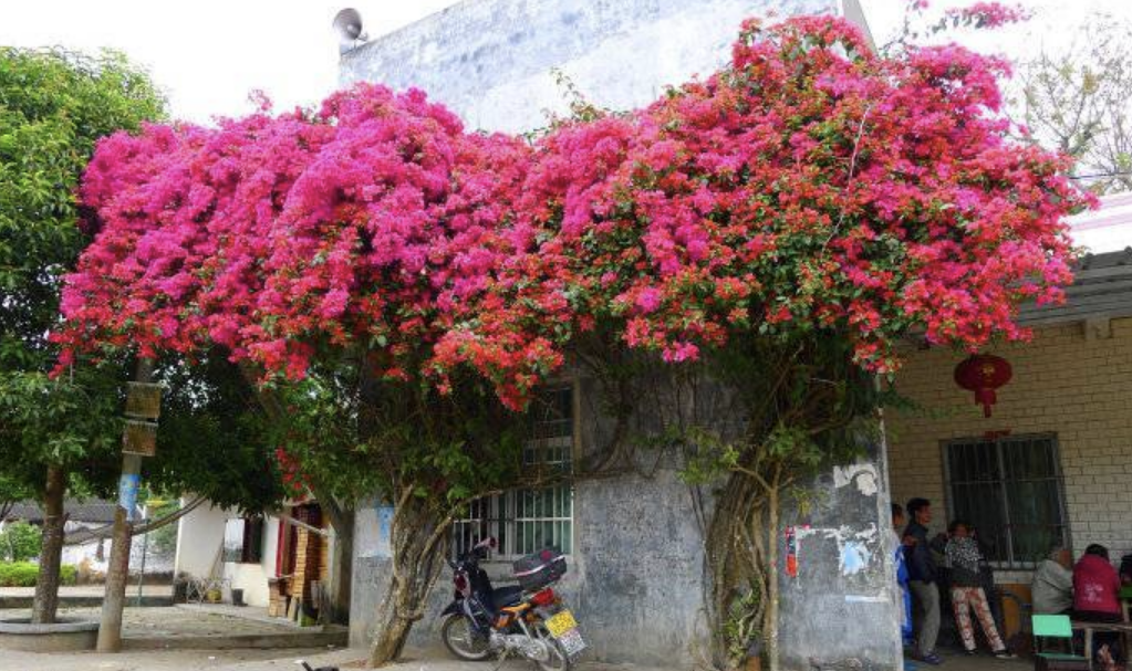 要是去广东地区走一走,你就会找到许多上百年的三角梅老桩,它们开花时就开出一片瀑布的感觉,超级漂亮,因为它也是传统的长寿花。不过要是到了北方,三角梅就比较难养了,冬天受冻就会落叶。