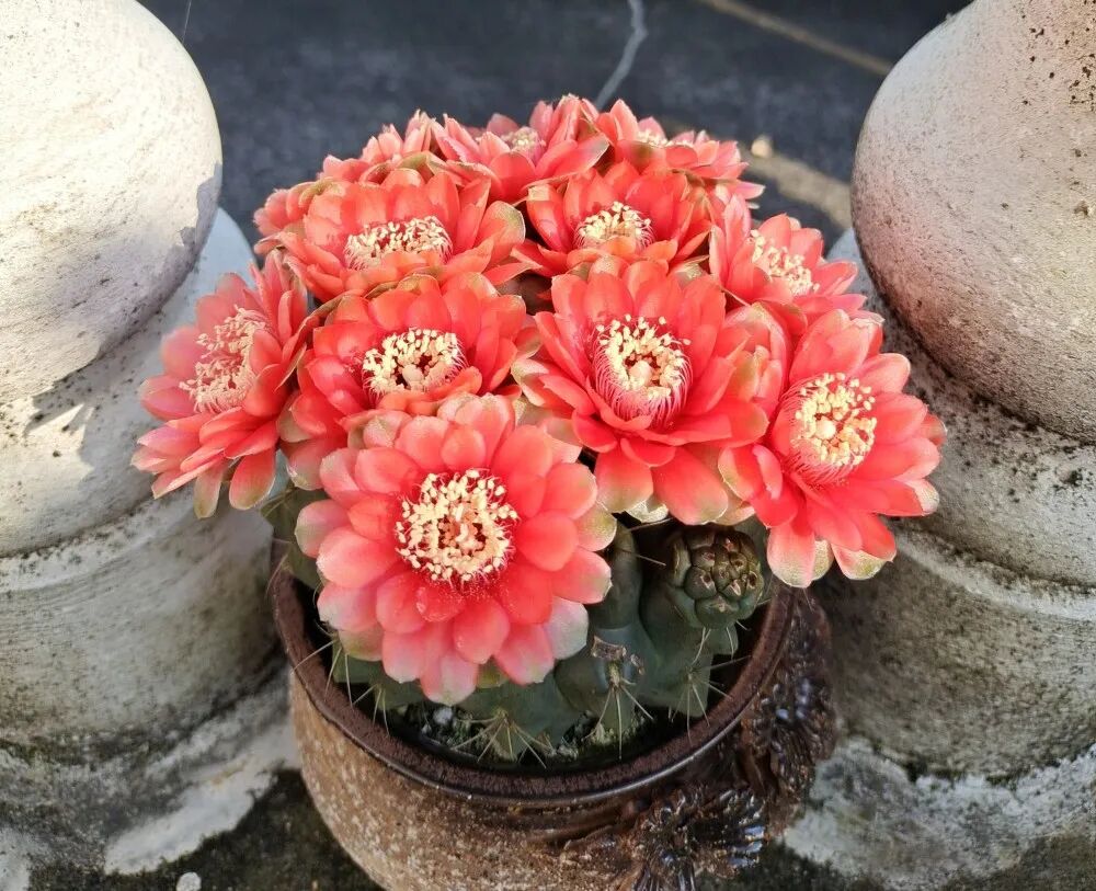 绯花玉是一种非常漂亮的花,它的花朵开出来以后,不仅颜色鲜艳,而且花朵极大,可以把整个花盆都盖住。绯花玉属于仙人球中的经典品种,仙人球本身就完全不怕干旱的,也不怕暴晒,所以养绯花玉往阳台一扔基本就不需要怎么管了,超级好养。