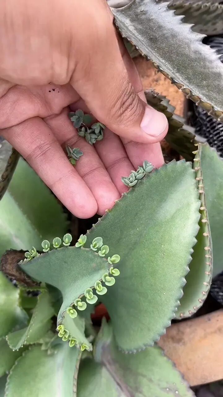 落地生根是一种多肉类的植物,它全身上下全是肉质的,肉质叶片的含水量高达百分之九十,因此它缺水时完全可以消耗自身的水分,所以根本不怕缺水,特别好养。此外它不仅可以开花,而且自己会长出小分身,掉在土里就能重新繁殖一棵,可以说生命力十分旺盛。