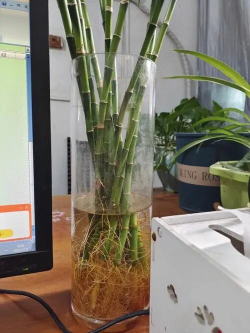 富贵竹一般都是水培,但很少有人知道,给富贵竹加水的深度是非常有讲究的,富贵竹很怕加水过深。有些花友把花瓶一次加满水,这是错误的。我们应该只加到花瓶三分之一的深度就足够了,留出三分之二的空间,让富贵竹裸露在空气里,这样便于富贵竹的枝条进行呼吸作用,不容易烂根。