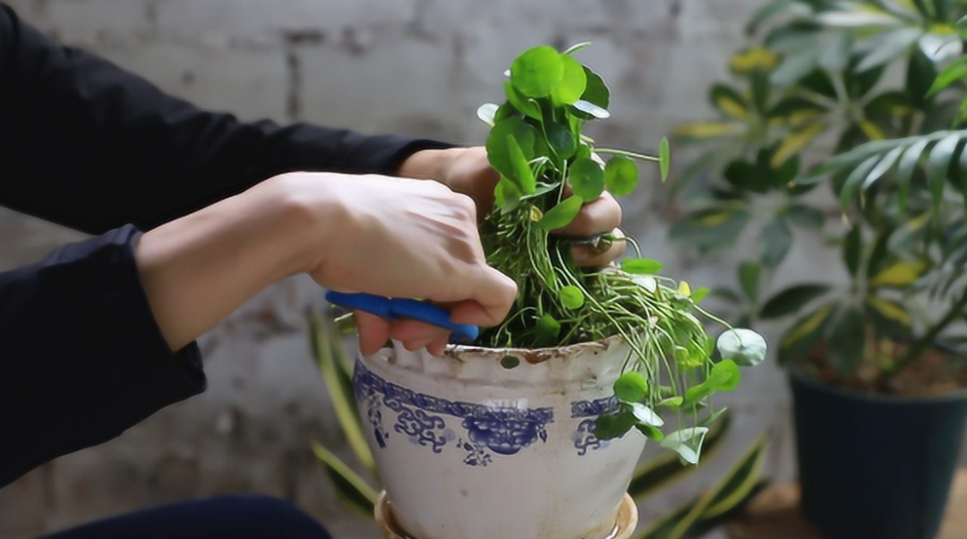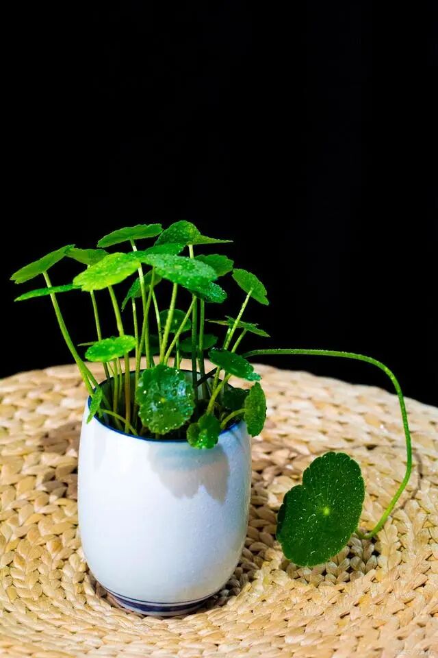 后来慢慢学习养铜钱草才知道,养这种植物一定要学会修剪,当它长得比较杂乱的时候,我们就一定要把过长的枝条修剪掉,否则它就会越长越难看。修剪好铜钱草以后,最后配一个合适的小盆来养,花盆越小,往往铜钱草呈现出来的效果就越好。