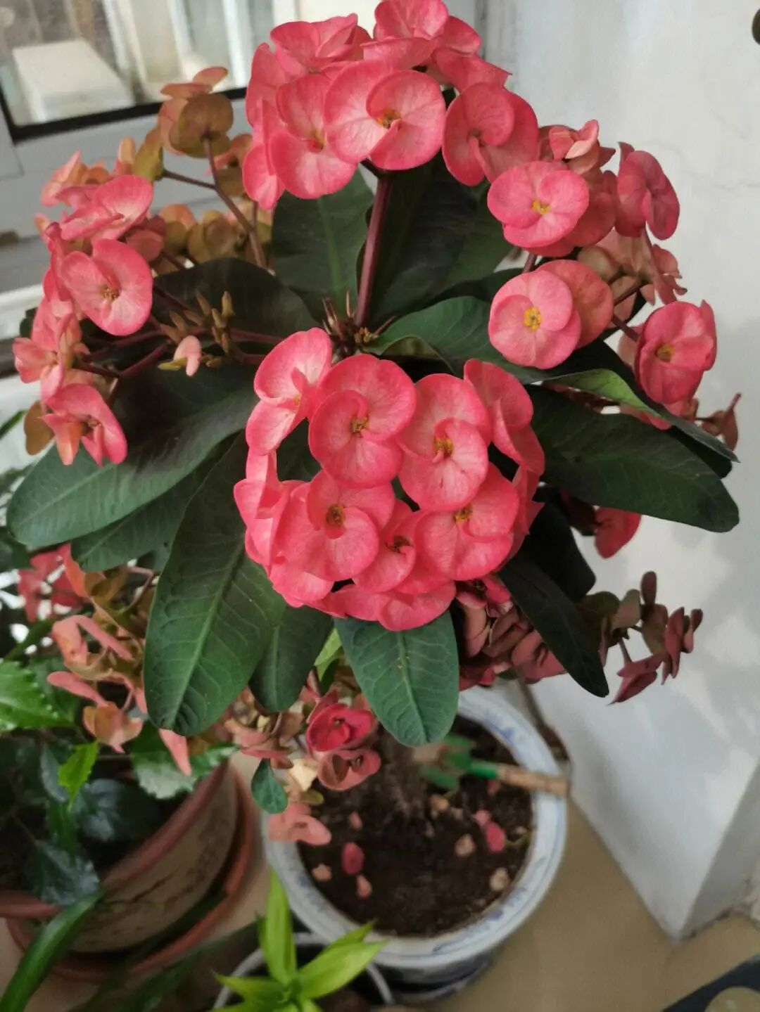 虎刺梅虽然是一种沙漠植物,但是它的开花能力实在是太强大了,不仅花量大,关键是颜色鲜艳喜庆,花期极长。只要气候不会过度寒冷,它就绝对不会停止开花,在南方很多城市虎刺梅都可以做到四季开花不断,所以很多人都会养一盆虎刺梅。